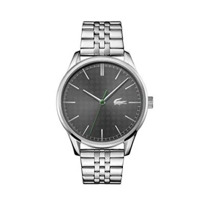 3-hand Quartz Movement Case thickness 8.4mm / Case Diameter 42mm Grey Dial with signature LACOSTE logo at 3 o'clock Stainless steel bracelet Water Resistance: 5ATM It may be worn while showering or swimming, but not scuba diving