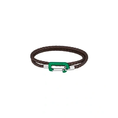 Sporty Double Wrap Bracelet from Lacoste: This men's bracelet features a contemporary double-wrap design, combining braided brown leather for a sophisticated look with a sporty edge that effortlessly elevates your style High-Quality Materials with a Unique Color Combination: Crafted from durable brown leather, this bracelet showcases a striking green aluminum carabiner, making it a stylish and modern accessory that stands out Inner Circumference of 190 mm with 4 mm Thick Cord: The bracelet offers a comfortable fit with an inner circumference of 190 mm and a cord thickness of 4 mm, ensuring it sits comfortably on your wrist Ideal Gift for the Fashion-Forward Man: This Lacoste bracelet makes a thoughtful gift for men who appreciate unique accessories and is available in different colorways to suit individual styles Versatile Carabiner Closure for Added Functionality: The bracelet features a logo-engraved aluminum carabiner closure that not only adds a bold detail but also ensures easy wear and secure fastening