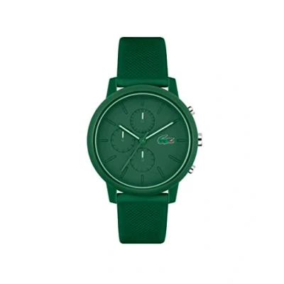 AmazonQuartz Chronograph Movement Case thickness 11.4mm / Case Diameter 43mm Green Dial with signature Lacoste crocodile logo at 3 o'clock Green silicone strap with petit piqué pattern Water Resistance: 5ATM It may be worn while showering or swimming, but not scuba diving