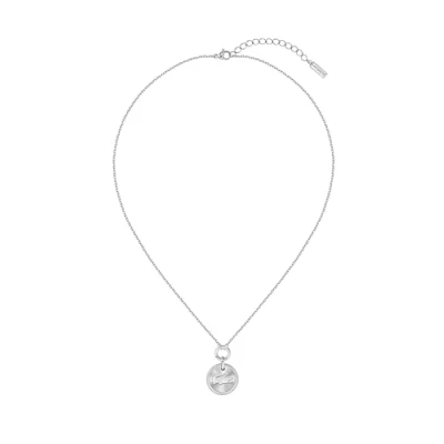 Elegant Medallion Pendant Necklace: The Memento necklace is a delicate, filigree take on classic medallion jewelry, featuring a polished crocodile medallion on a stainless steel cable chain Premium Stainless Steel: Crafted from high-quality stainless steel, this necklace combines durability and elegance, making it a timeless addition to any jewelry collection Perfectly Sized for Everyday Wear: The necklace measures 457mm in length with an additional 25mm extender for a customizable fit; the medallion itself measures 18 x 2.5mm, making it a sophisticated yet subtle accessory Chic and Coordinated with Logo Detail: The Memento collection features a pendant necklace, bracelet, and stud earrings, all adorned with the signature Lacoste crocodile and engraved logo on the reverse; wear them together or separately for a timeless and elegant look Versatile Carabiner Closure: The necklace is secured with a durable carabiner closure, offering both a secure fit and ease of wear, perfect for daily use or as part of a layered look