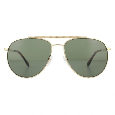 Lacoste Sunglasses L177S 714 Gold Grey are a classy pilot style with textured temples and matching brow bar for a luxurious chic finish. The Lacoste lettered logo at the temples completes these cool aviator Lacoste shades.
