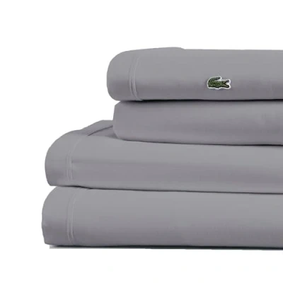 Lacoste Heritage: Classic matte colors and the signature embroidered croc, timeless and elegant. A must-have for any transitional bedrooms Set Includes: 102" x 112" flat sheet, 72" x 84" + 16" fitted sheet, and two 20" x 37" pillowcases Cotton Percale: Breathable, perfect for year-round comfort, 200TC Durable Construction: Withstands years of use and machine wash Oeko-Tex Certified: Tested in an independent lab and verified to be safe from over 1,000 harmful substances