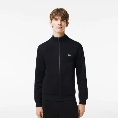 Lacoste regular fit brushed fleece Mens sweatshirt with zipper Black Cotton Size X Large