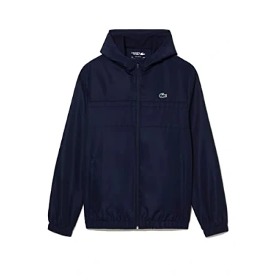 Elevate your outdoor attire with the Lacoste Zipped Hooded Sport Jacket, a perfect blend of style and functionality. Whether heading to the gym, taking a casual stroll, or meeting friends for a coffee, this jacket is perfect for your active adventures. This elegant jacket that seamlessly combines fashion with performance. Made with recycled materials, it is a testament to Lacoste's commitment to sustainability. The diamond taffeta fabric, known for its durability, adds a touch of sophistication to this sporty jacket. With zip fastening and a hood, it offers practicality and protection. Designed in a solid colourway, this jacket provides a versatile and timeless look. The elastane hem and cuffs offer a snug fit, while the solid colourway offers versatility, making it effortless to pair with the rest of your outfit. To complete the design, the iconic crocodile sits proudly on the chest for an authentic touch and brand appeal. Composition: Main Fabric / Lining: 100% Polyester.
