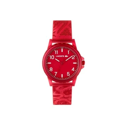 3-HAND QUARTZ MOVEMENT – MADE FOR EVERYDAY TIMEKEEPING – The Lacoste Rider keeps time simple and reliable for kids and teens with a clean, easy-to-read three-hand display. 36MM SEMI-TRANSPARENT RED TR90 CASE – Made from TR90, a lightweight and durable plastic, the frosted red case and bezel ensure comfort and style for kids on the move. RED DIAL WITH NUMERALS & INDEXES – A semi-gloss red dial with bold white Arabic numerals and stick indexes makes time-reading quick and fun. PRINTED SEMI-TRANSPARENT SILICONE STRAP – PLAYFUL AND DURABLE – The soft silicone strap with frosted finish and crocodile print offers flexibility, comfort, and standout Lacoste style. KID-FRIENDLY DESIGN – WATER RESISTANT & AVAILABLE IN MULTIPLE COLOURS – Water-resistant to 5 ATM and available in several color options, the Rider is the perfect gift for stylish kids on the go.