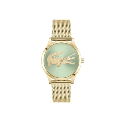 ELEGANT 3-HAND QUARTZ MOVEMENT – Minimalist and reliable timekeeping in a clean three-hand format – ideal for everyday sophistication. 36MM YELLOW GOLD IP CASE – A sleek 8.7 mm profile with a radiant yellow gold ion-plated finish – refined, feminine, and modern. GREEN DIAL WITH LACOSTE CROC TEXTURE – A soft green semi-gloss dial features the signature Lacoste crocodile in a plissé finish – elegant with a sporty soul. STAINLESS STEEL MILANESE MESH BRACELET IN CHAMPAGNE GOLD IP – Refined stainless steel mesh in a soft gold tone, blending comfort and jewelry-inspired elegance. 5 ATM WATER RESISTANT – A STYLISH GIFT FOR HER – Splash-proof for daily wear. A beautiful women’s watch that makes an elegant gift for birthdays, holidays, or special moments.