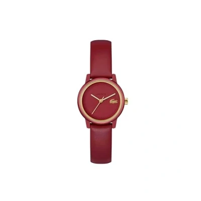3-HAND QUARTZ MOVEMENT FOR HER – The Lacoste.12.12 Swift offers everyday precision with a sleek three-hand layout in a compact, modern format. 28MM CEDAR ALUMINIUM CASE – A semi-matt aluminum case in a deep cedar red tone, offering a bold, modern take on feminine styling. CEDAR DIAL WITH PETIT PIQUÉ DETAIL – Curved dial with tonal petit piqué texture and a gold-tone Lacoste crocodile at 3 o’clock for standout elegance. CEDAR LEATHER STRAP – RICH TONE, SOFT FEEL – A smooth matte leather strap in cedar red provides all-day comfort with refined color continuity. 3 ATM WATER RESISTANT – LIGHT AND VERSATILE – Splash-proof and easy to wear, this Lacoste ladies’ watch is perfect for day-to-day urban style or casual gifting.
