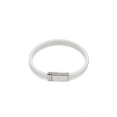 Silicone Bracelet for ladies by LacosteMaterial: White silicone with stainless steel closure Inner circumference: 17.5 cm Embellished with petit piqué pattern inspired by the famous Lacoste polo shirt Closure: Magnetic