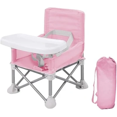 LADIDA Foldable Baby Travel Seat Booster Toddlers Dining Removable Tray with Bag Portable Folding Feeding Chair for Children Infants,Pink 403