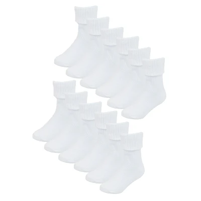 Making sure your little ones have enough socks to go on with is important as it keeps them comfortable. That’s why these classic cotton rich turnover socks are a great idea to add to their sock drawer, especially as these come in a 12 Pair Value Pack! These baby socks are made from soft Cotton Rich fibres which will make sure that their feet remain super soft and comfortable throughout the day. They also include a turnover top so you can adjust the length to what keeps your baby most comfy. There’s plenty of colours to choose from, all in classic colours for boys and girls. They include: Cream, Blue, Navy, Pink and White, so you’ve got colour options for boys and girls as well as neutral colours. These socks come in 12 pairs and different 5 Colours: Cream, Blue, Navy, Pink & White. They are available in 3 sizes: 0-6 Months, 6-12 Months & 12-24 Months. They are made from 78% Cotton; 20% Polyester; 2% Elastane and are Machine Washable.