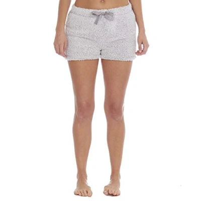 Ladies Borg Winter Chunky Shorts Fluffy Cosy Grey M