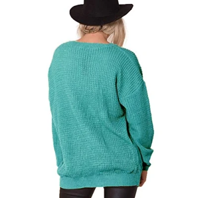 Ladies Chunky Knitted Sweater Pullover for Womens Cosy Baggy Winter Crew Neck Jumper Thick Top Casual Pull On Style Aqua 16 18