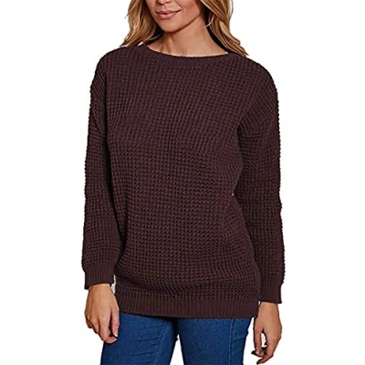 Ladies Chunky Knitted Sweater Pullover for Womens Cosy Baggy Winter Crew Neck Jumper Thick Top Casual Pull On Style Brown 20 22