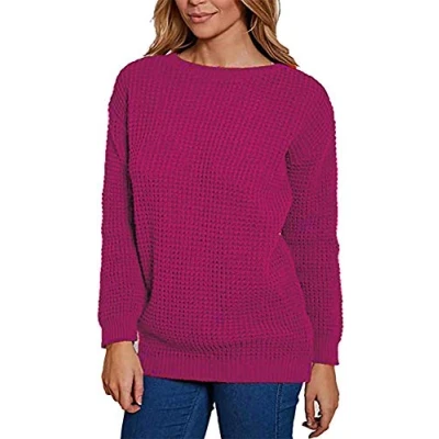 Ladies Chunky Knitted Sweater Pullover for Womens Cosy Baggy Winter Crew Neck Jumper Thick Top Casual Pull On Style Fuchisa 12 14 Fuchsia
