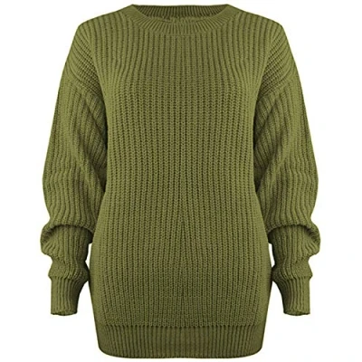 Ladies Chunky Knitted Sweater Pullover for Womens Cosy Baggy Winter Crew Neck Jumper Thick Top Casual Pull On Style Khaki 12 14