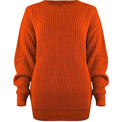 Ladies Chunky Knitted Sweater Pullover for Womens Cosy Baggy Winter Crew Neck Jumper Thick Top Casual Pull On Style Orange 20 22