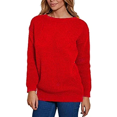 Ladies Chunky Knitted Sweater Pullover for Womens Cosy Baggy Winter Crew Neck Jumper Thick Top Casual Pull On Style Red 12 14