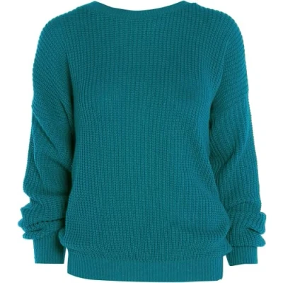 Ladies Chunky Knitted Sweater Pullover for Womens Cosy Baggy Winter Crew Neck Jumper Thick Top Casual Pull On Style Teal 8 10