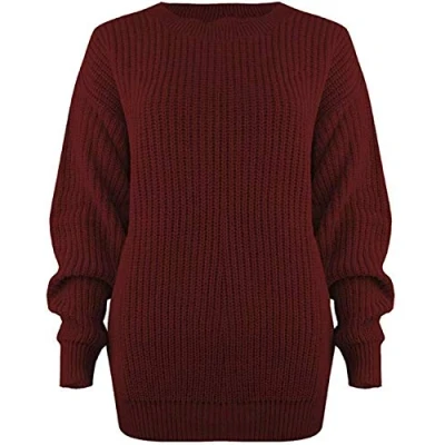 Ladies Chunky Knitted Sweater Pullover for Womens Cosy Baggy Winter Crew Neck Jumper Thick Top Casual Pull On Style Wine 16 18