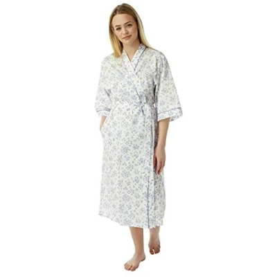 Ladies Dressing Gowns Lightweight : This comfortable summer dressing gown is made of 80% Polyester, 20% Cotton blend, providing a soft, smooth and lightweight feel for ultimate relaxation. Available in UK sizes 10-30. Vibrant Floral Print : Our ladies dressing gowns feature a beautiful floral print in shades of pink, blue, and lilac, creating a perfect blend of style and comfort. The short sleeves make it an ideal summer dressing gown for women in the UK. Practical Design: These womens dressing gowns have a relaxed fit with a wrap around style and a tie belt. The robe also includes two side pockets, adding convenience to this stylish cotton dressing gown. Versatile Use: This cotton dressing gowns for women uk can be used as a towel robe, perfect after a bath or shower. It's not just a bathrobe for women, but also great as loungewear, a house coat, or even as a hospital gown. Plus Size Available: Our dressing gown womens range includes plus sizes, ensuring everyone can enjoy the comfort of our cotton dressing gowns for women UK. Experience the luxury of a lightweight dressing gown women adore.