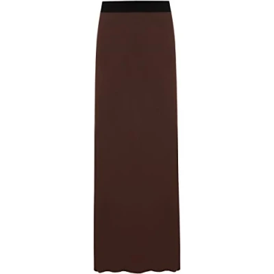 Ladies Long Maxi Skirt Womens Elasticated Stretch Full Length High Waist Jersey Gypsy Style Plain Printed Plus Size Skirts Dark Brown 16 18