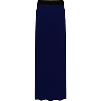 Ladies Long Maxi Skirt Womens Elasticated Stretch Full Length High Waist Jersey Gypsy Style Plain Printed Plus Size Skirts Navy Blue 24 26