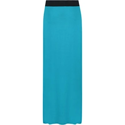 Ladies Long Maxi Skirt Womens Elasticated Stretch Full Length High Waist Jersey Gypsy Style Plain Printed Plus Size Skirts Turquoise 24 26