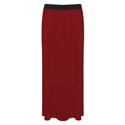 Ladies Long Maxi Skirt Womens Elasticated Stretch Full Length High Waist Jersey Gypsy Style Plain Printed Plus Size Skirts Wine 20 22