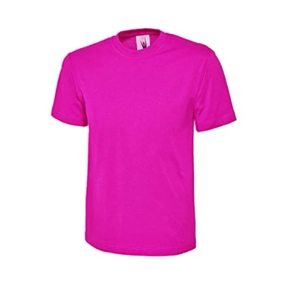 Ladies Loose Fit Plain T Shirt 100% Cotton Premium Unisex Top, Hot Pink, UK 18
