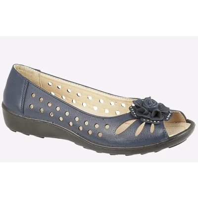 Ladies Navy Punched Open Toe Flower Casual Blue Size UK 5