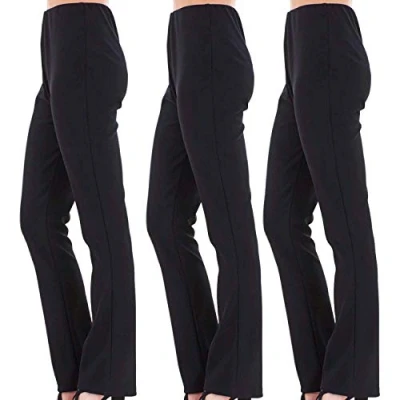 Ladies (Pack of 3) Stretch Bootleg Trousers Ribbed Women Bootcut Elasticated Waist Pants Work WEAR Pull ON Bottoms Plus Sizes 8 26 (UK 18/27" Short Inside Leg, Black+Black+Black)