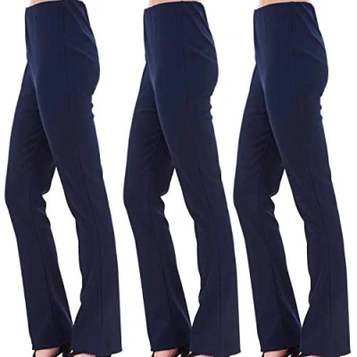 Ladies (Pack of 3) Stretch Bootleg Trousers Ribbed Women Bootcut Elasticated Waist Pants Work WEAR Pull ON Bottoms Plus Sizes 8 26 (UK 26/29" Regular Inside Leg, Navy+Navy+Navy)