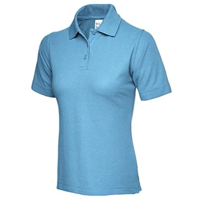 Ladies Pique Polo Shirt Size UK 8 to 26 Plus New Casual Sports Gym Work (UK 22 24 (3XL), Sky)