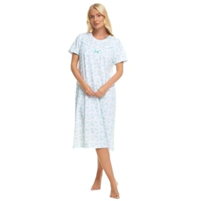 Ladies Short Sleeved 100% Cotton Jersey Butterfly Print Nightdress. Cerise, Navy, Lilac or Coral.Sizes 8 10 12 14 16 18 20 22 24 26 28 30 (AQUA, 22)