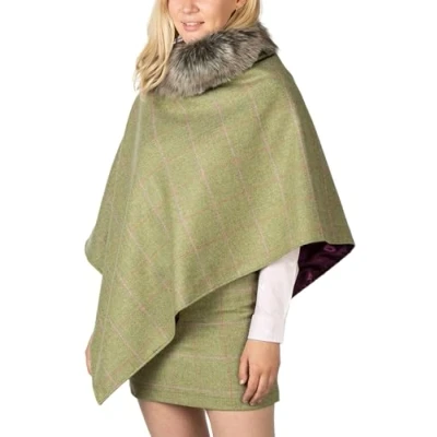 Ladies Tweed Poncho Womens British Made Wool Ponchos Cape Shawl Country (UK, Alpha, One Size, Regular, Light Green/Silver)