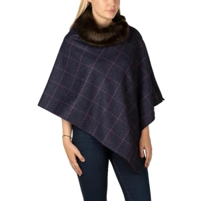 Ladies Tweed Poncho Womens British Made Wool Ponchos Cape Shawl Country (UK, Alpha, One Size, Regular, Navy/Brown)