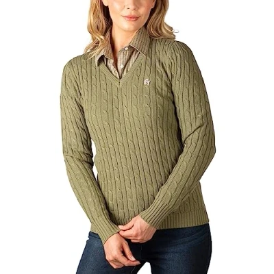 Ladies V Neck Cable Knit Jumper Womens Chunky Knitted Pullover Sweater (as8, Numeric, Numeric_16, Regular, Moss)
