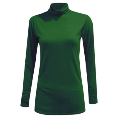 Ladies Women Basic Long Sleeve Plain Polo Turtle Neck Stretch Plus Size Top T Shirt (Bottle Green, SM)
