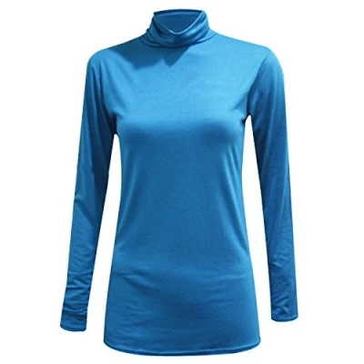 Ladies Women Basic Long Sleeve Plain Polo Turtle Neck Stretch Plus Size Top T Shirt (Turquoise, ML)