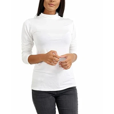 Ladies Women Basic Long Sleeve Plain Polo Turtle Neck Stretch Plus Size Top T Shirt (White, 3XL)