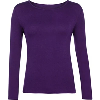 Ladies Women Basic Long Sleeve Plain Round Neck Stretch Plus Size Top T Shirt (Purple, XL)