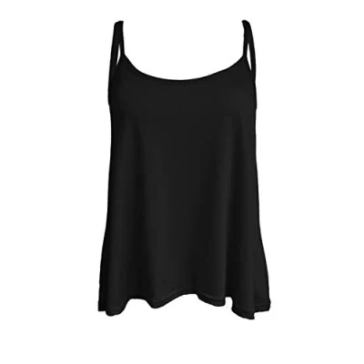 Ladies Women Plus Size New Camisole Cami Plain Printed Strappy Swing Vest Top Flared Sleeveless (Black, 12 14)