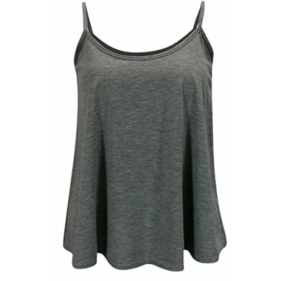 Ladies Women Plus Size New Camisole Cami Plain Printed Strappy Swing Vest Top Flared Sleeveless (Charcoal, 24 26)