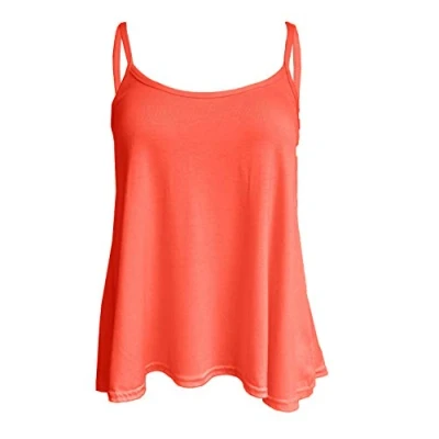 Ladies Women Plus Size New Camisole Cami Plain Printed Strappy Swing Vest Top Flared Sleeveless (Coral, 20 22)