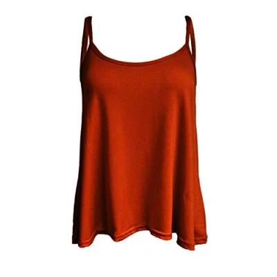 Ladies Women Plus Size New Camisole Cami Plain Printed Strappy Swing Vest Top Flared Sleeveless (Rust, 24 26)
