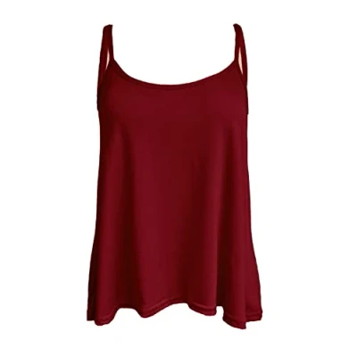 Ladies Women Plus Size New Camisole Cami Plain Printed Strappy Swing Vest Top Flared Sleeveless (Wine, 24 26)