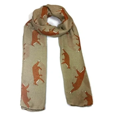 Ladies Women's Colorful Long Fox Wolf Animal Print Scarf Wraps Shawl Soft Scarves Sale (Beige)