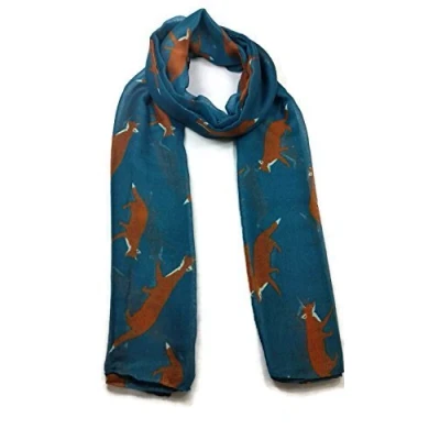 Ladies Women's Colorful Long Fox Wolf Animal Print Scarf Wraps Shawl Soft Scarves Sale (Teal Green)