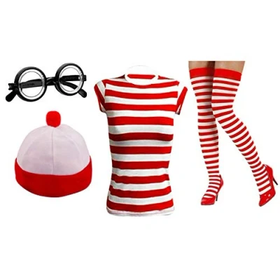 4 Piece Set includes, T-shirt, Hat, Glasses and Socks Materiel : 85% Cotton, 10% Polyester, 5% Elastain Great Quality Stripe T-Shirt Complete Outfit Perfect for carnival, Theme parties, Halloween and Hen Parties Book week costumes with stirpped tshirt and beanie hat with glasses and socks