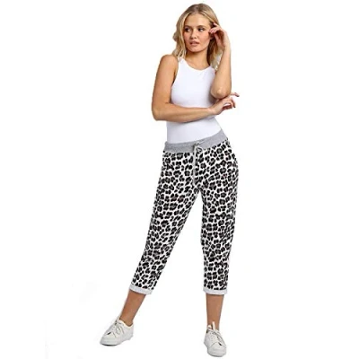 Ladies Women's Italian Leopard Animal Print Joggers 2 Pocket Comfy Turn Up Trouser Pants (8 10, Brown Print)